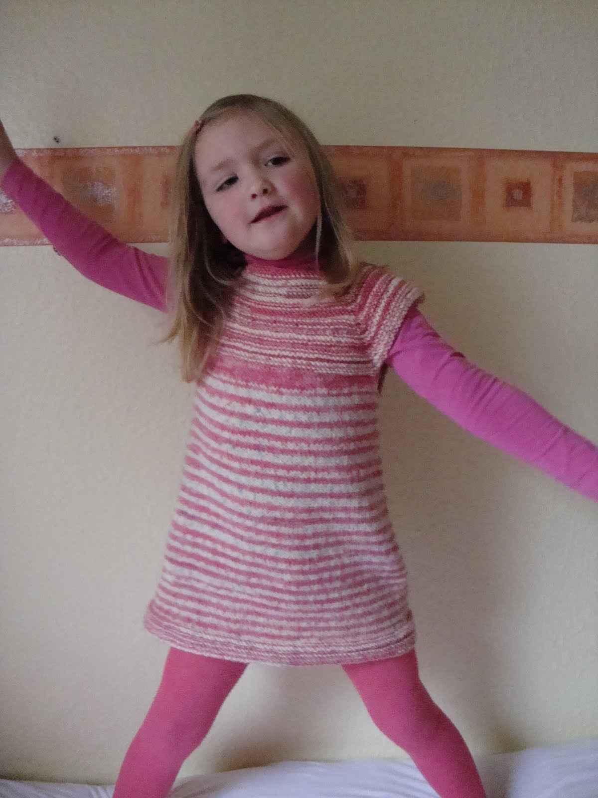 Little sister's dress by Tora Froseth. Cute, top-down, a seamless knit in the round.